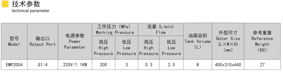单作用、高性能超高压电动泵。